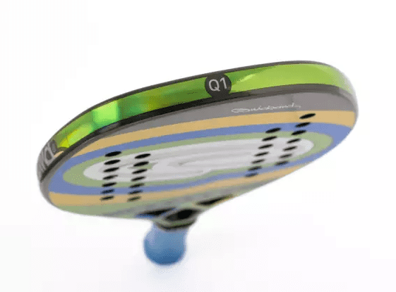 Avec un perçage latéral et un poids approximatif de 330 grammes, la Q1 Brasil se présente comme une raquette particulièrement maniable, parfaite pour ceux qui cherchent à maîtriser leur coup sans surcharger leur bras.