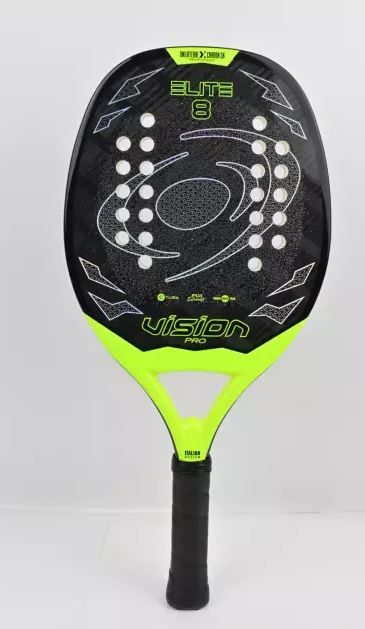 La raquette de Beach tennis VISION ELITE 8 revient ! Un des best sellers de la marque depuis sa création. La nouveauté est une maniabilité plus importante aujourd 'hui et une raquette surtout contrôle avec une capacité puissance bien présente. Stable à la frappe elle donne un sentiment de fiabilité sur toutes les grosses frappes.