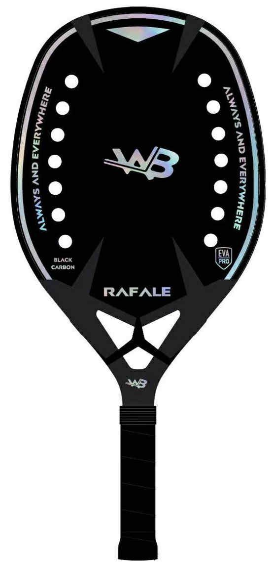 La recherche de la perfection. Quand tu vas prendre cette raquette en main tu vas tout de suite ressentir un effet de maniabilité de facilité et même de puissance. Nous avons beaucoup travaillé sur le poids et l'equilibre idéal. La mousse Black EVA est chauffée pour atteindre la rigidité optimale afin de garantir le rapport puissance contrôle parfait. Le carbone employé sur nos modèles est le meilleur du marché. Avec la collection 2026 WAB s'installe dans le haut de gamme à un prix ultra compétitif. La raquette de Beach Tennis WAB RAFALE 2026 peut être mise dans toutes les mains tellement elle est maniable, légère et polyvalente. Pour les filles (mais pas seulement) la petite sœur REBELLE enregistre les mêmes caractéristiques techniques de jouabilité. Une merveille aussi. Découvres la ici...