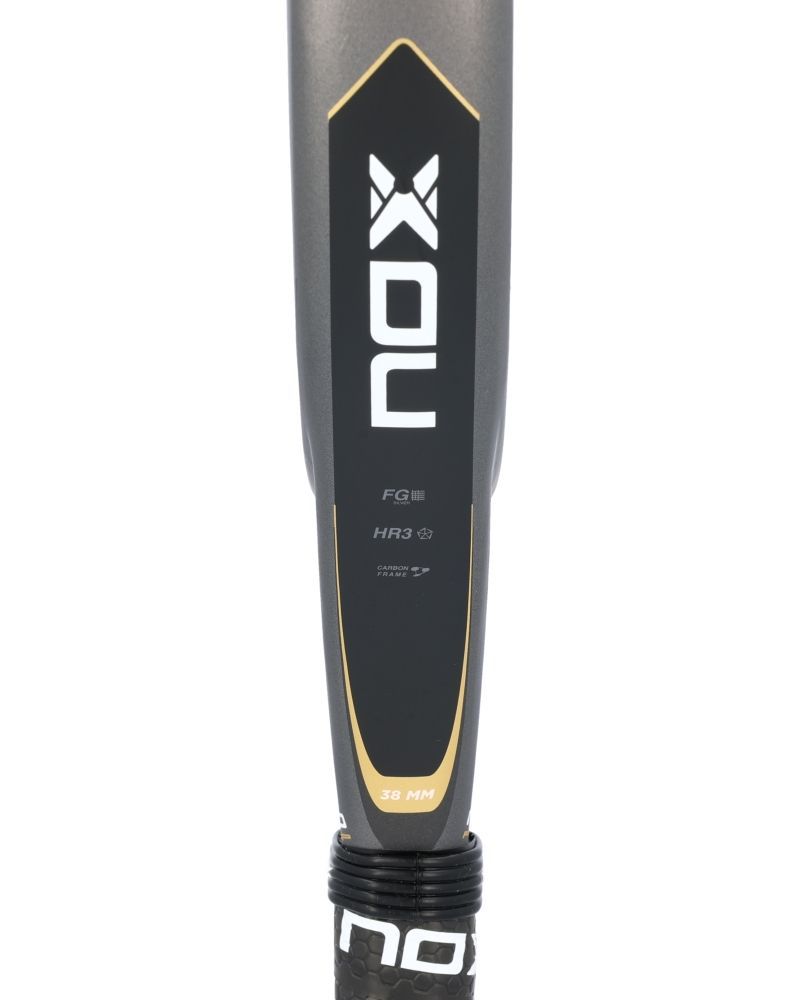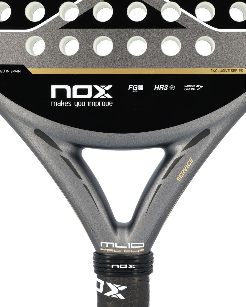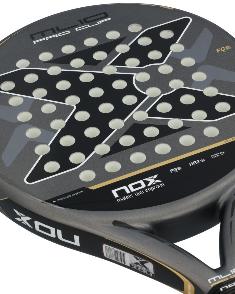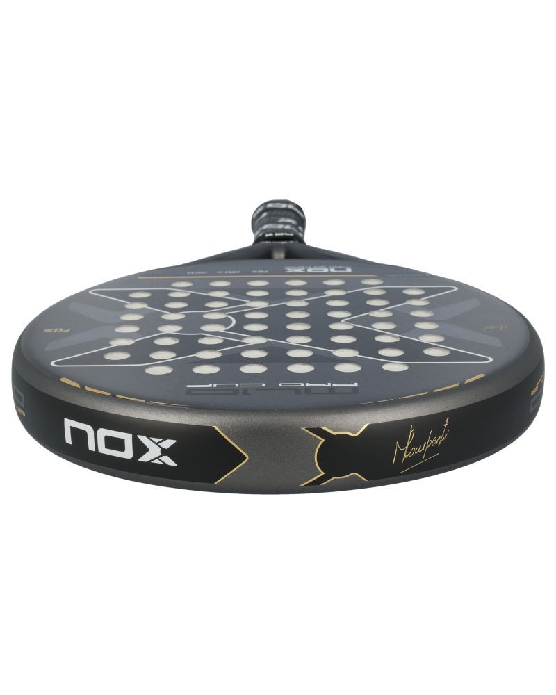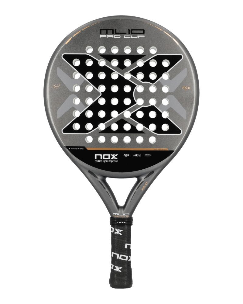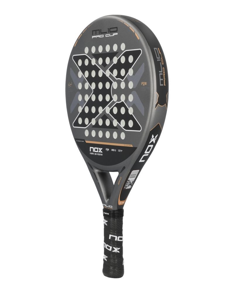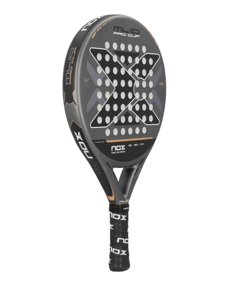La Nox ML10 Pro Cup Coorp est le modèle de raquette utilisé par Miguel Lamperti, élaboré pour les joueurs recherchant un contrôle optimal sans renoncer à la puissance. Sa forme sphérique et son centre de gravité bas lui donnent une excellente maniabilité, parfaite pour des frappes d'une précision remarquable.