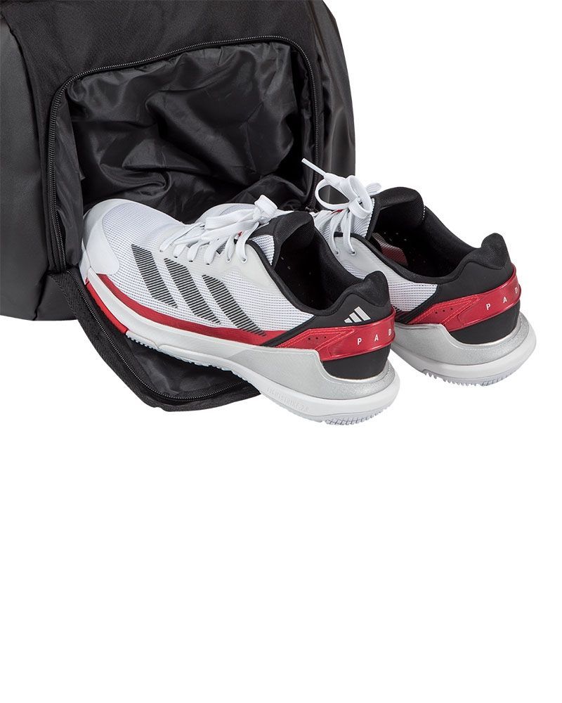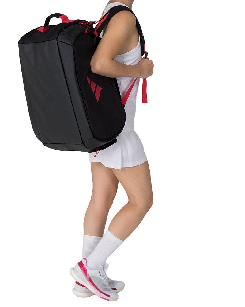 Fabriqué avec des matériaux de haute qualité tels que le nylon, le polyuréthane, le polyester recyclé et le polysulfone, ce sac de padel Adidas allie robustesse, durabilité et respect de l'environnement. Mesurant 39 x 55 x 27,5 cm et d'une capacité de 54 litres, il offre l'espace idéal pour transporter tout votre équipement d'entraînement et de compétition.