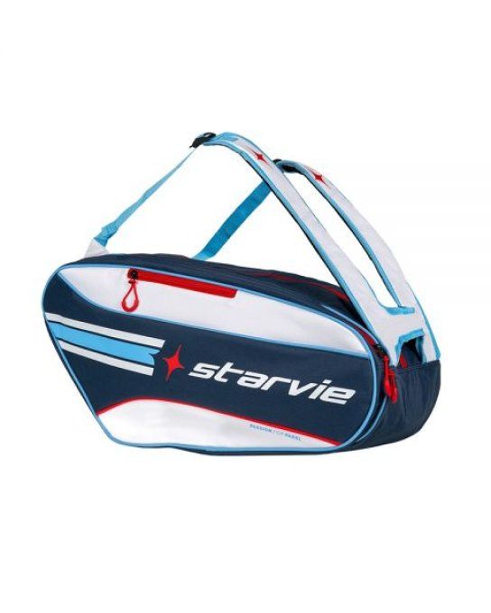 Grand sac de Padel STARVIE TOUR BLUE . Le sac de padel Starvie Tour Blue s'impose comme une option idéale pour les joueurs qui cherchent à prendre soin de leurs raquettes et à transporter leur équipement de manière pratique. Cette conception comporte des compartiments qui protègent les lames des impacts grâce à sa finition rembourrée, préservant ainsi ses performances et sa durabilité. En plus de ces espaces thermiques, son compartiment central est suffisamment grand pour ranger vêtements de sport et autres accessoires indispensables au jeu. Ce sac de raquette de padel comprend également un compartiment ventilé, idéal pour ranger les chaussures, gardant chaque article à sa place et bien aéré.